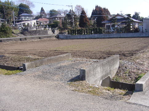 西側前面道路に水路あり(架橋が必要)、集落内開発地域 |