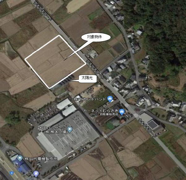 幅員5mウキウキロード(宇城北部広域農道)に90m接道 地目:田 埋め立てが必要です)