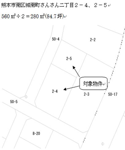 2番4、2番5で560u 北側半分280u(84.7坪) |